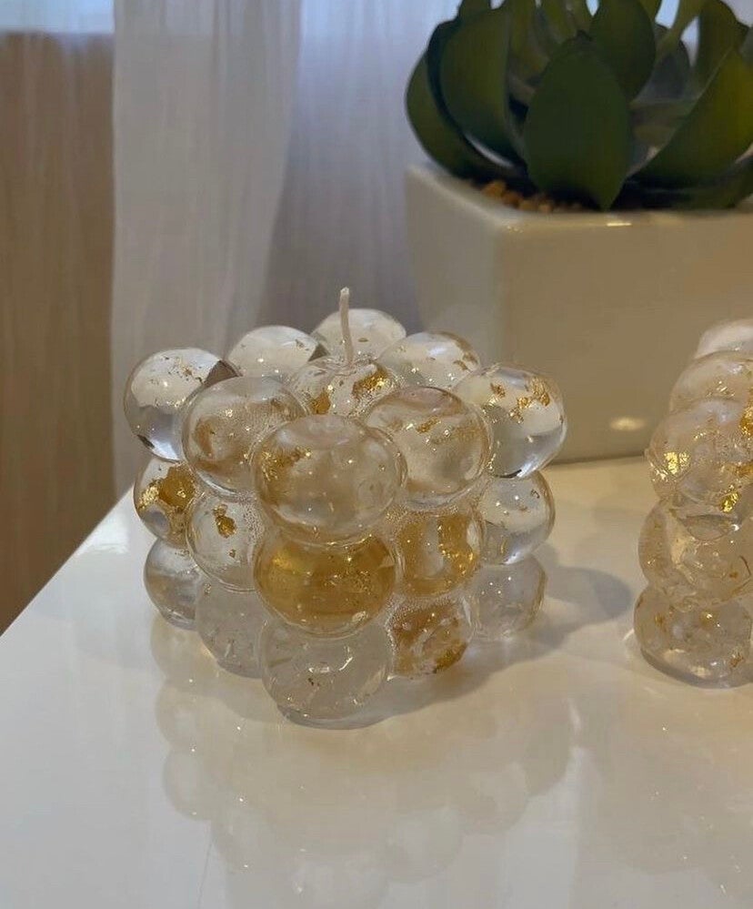 Vela burbuja grande o chica con hojas de oro , plata o cobre